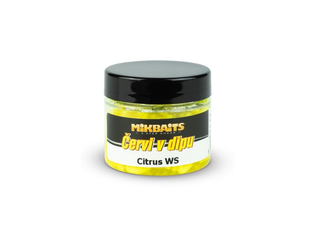 Mikbaits červy v dipe Citrus WS 50ml : Červy v dipe sú neskutočne atraktívne nástrahou pre feeder, method feeder, závody v love kaprov, ale aj bežných rybárov.