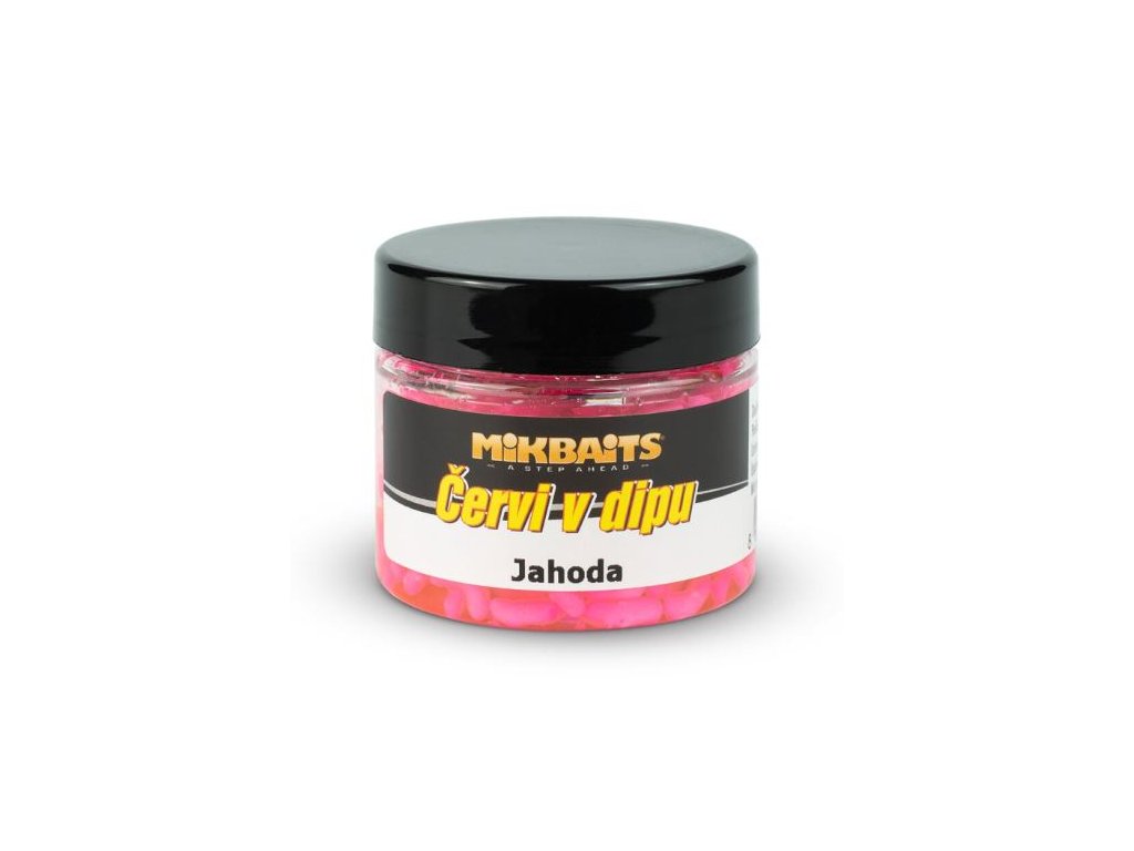 Mikbaits červy v dipe Jahoda 50ml : Červy v dipe sú neskutočne atraktívne nástrahou pre feeder, method feeder, závody v love kaprov, ale aj bežných rybárov.