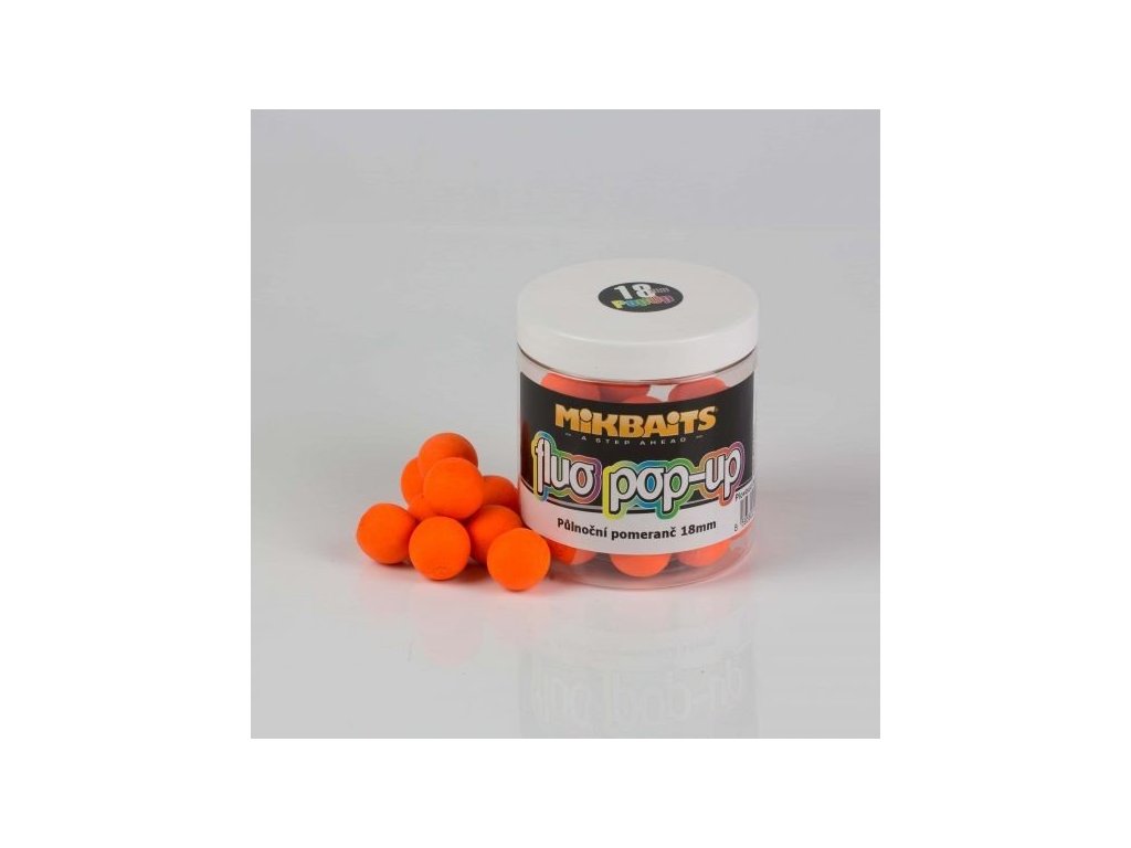 Mikbaits Fluo Pop up 250ml Polnocny Pomaranc 14mm - Plávajúce Fluoro boilies – Najnovšie Fluo Pop Up Boilies vyrábané zo zmesí CC MORE.