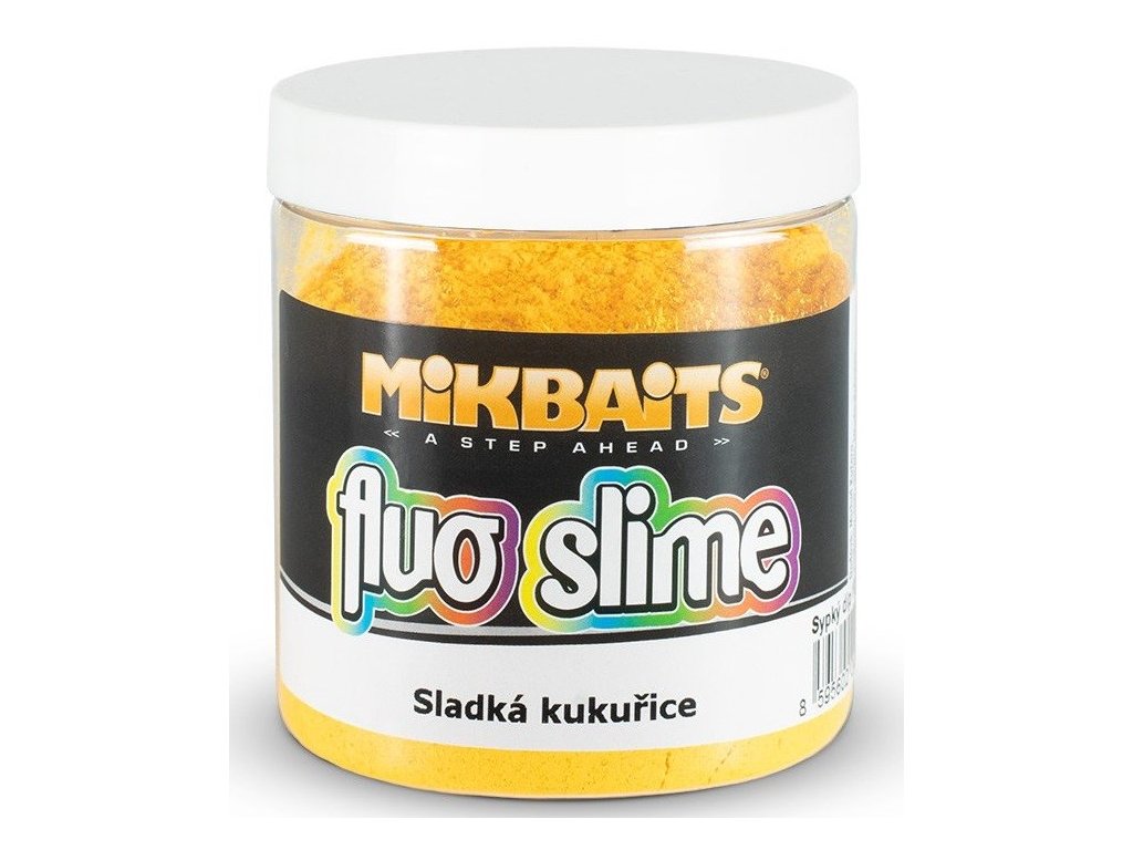 Mikbaits Fluo Slime Obalovaci Dip 100g Sladká kukurica - Je sypký obaľovací dip, ktorý na nástrahe vytvorí chuťovo aj vizuálne lákavý obláčik.Sú skvelé ako s nástrahami na dne, tak aj s pop-up a Wazza-up. Výborné sú tiež na kukuricu pri love amurov alebo peletách všetkých veľkostí. Nástrahu najprv namočte do vody, dipu alebo (fluo) boosteru a obaľte v sypkom Fluo slime. Ak chcete, aby chumáčik slimu zostal na nástrahe čo najdlhšie, postup opakujte a potom nechajte aspoň chvíľku zaschnúť
