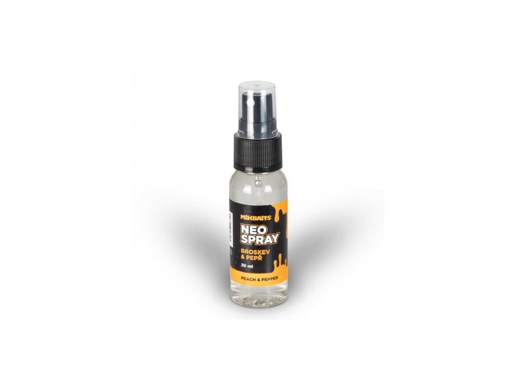 Mikbaits Neo Spray Broskna čierne korenie 30ml : Neo spray je vysoko koncentrovaný tekutý postrek, kde sú okrem esencie aj koncentrované sladidlá a chuťové stimulátory.