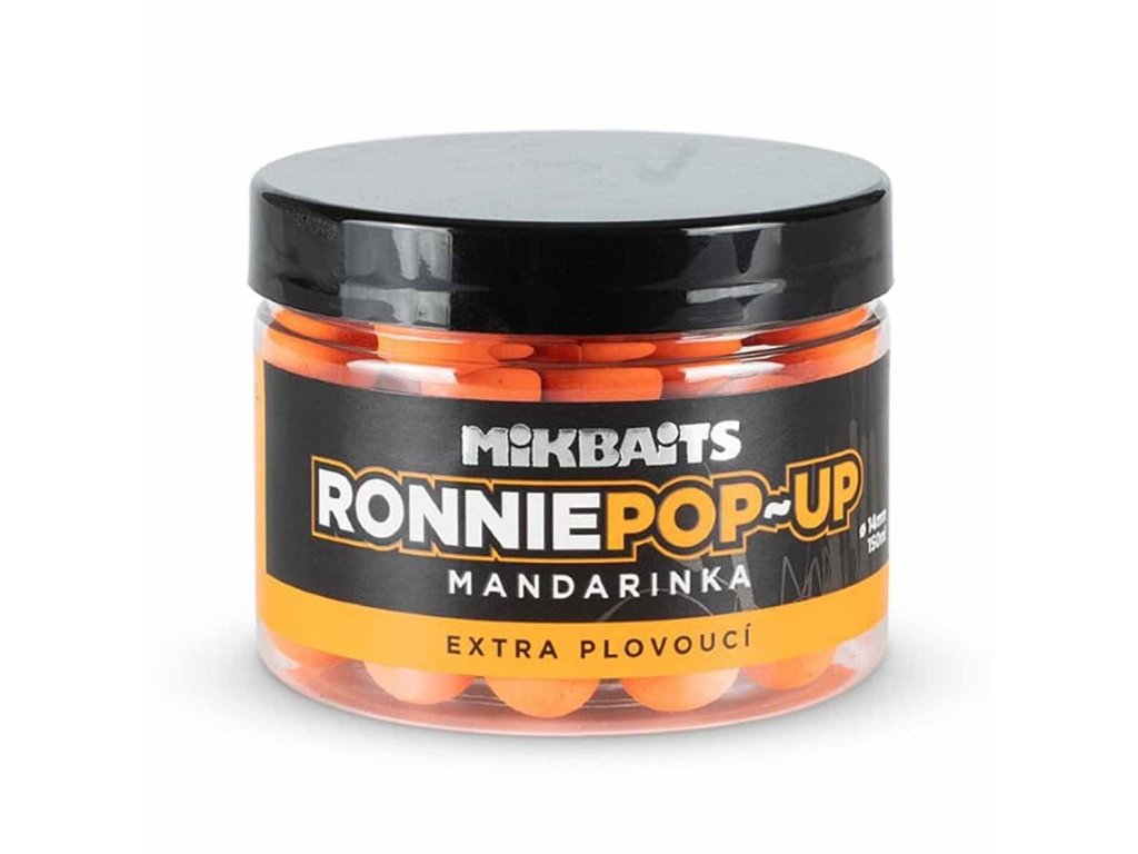 Mikbaits Ronnie pop-up 150ml - Mandarinka 14mm - Ronnie pop-up sú 14 mm extra plávajúce fluo boilie vyrábané zo špeciálnej zmesi.