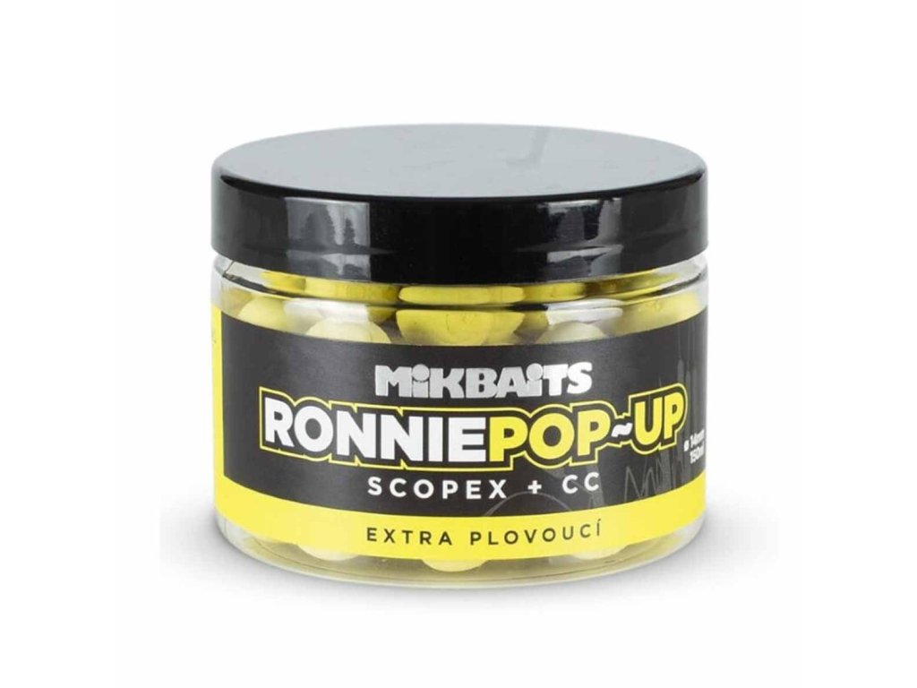 Mikbaits Ronnie pop-up 150ml - Scopex + CC 14mm - Ronnie pop-up sú 14 mm extra plávajúce fluo boilie vyrábané zo špeciálnej zmesi.