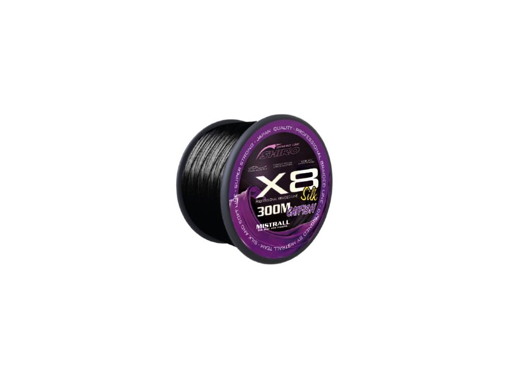 Mistrall Shiro Catfish X8 300m 0,60mm čierna šnúra - Moderná, spletaná šnúra z 8 vlákien s kruhovým prierezom. Je charakterizovaná vysokou pevnosťou v uzloch, tichým chodom, plynulosťou v poklese, kompaktnou a jemnou štruktúrou. Pri navíjaní sa nelepí, je veľmi mäkká a má nulovú prieťažnosť. Určené na rybolov sumcov.