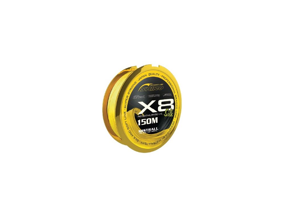 Mistrall Silk X4 150m 0,17mm f. fluo žltá - Kvalitná pletená šnúra presne pretkaná z 8 vlákien, s kruhovým prierezom. Vysoká pevnosť v uzle, tichá prevádzka. Pri navíjaní sa nelepí, je veľmi mäkký a má nulový úsek, je dokonale umiestnený na cievke . Je vhodný pre všetky spôsoby rybolovu.