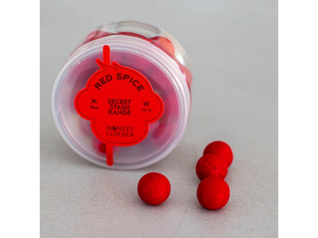 Monkey Climber Pop Up Red Spice 15mm 100ml - V posledných rokoch návnady Red Spice trochu predbehla rybársku scénu Beneluxu – najmä Belgicko – a toto je tá najlepšia príchuť Red Spice, akú sme mohli nájsť. Tmavé a veľmi husté v kombinácii s práškom Hot Spice a doplnené niekoľkými sladkými kvapkami LMSE.