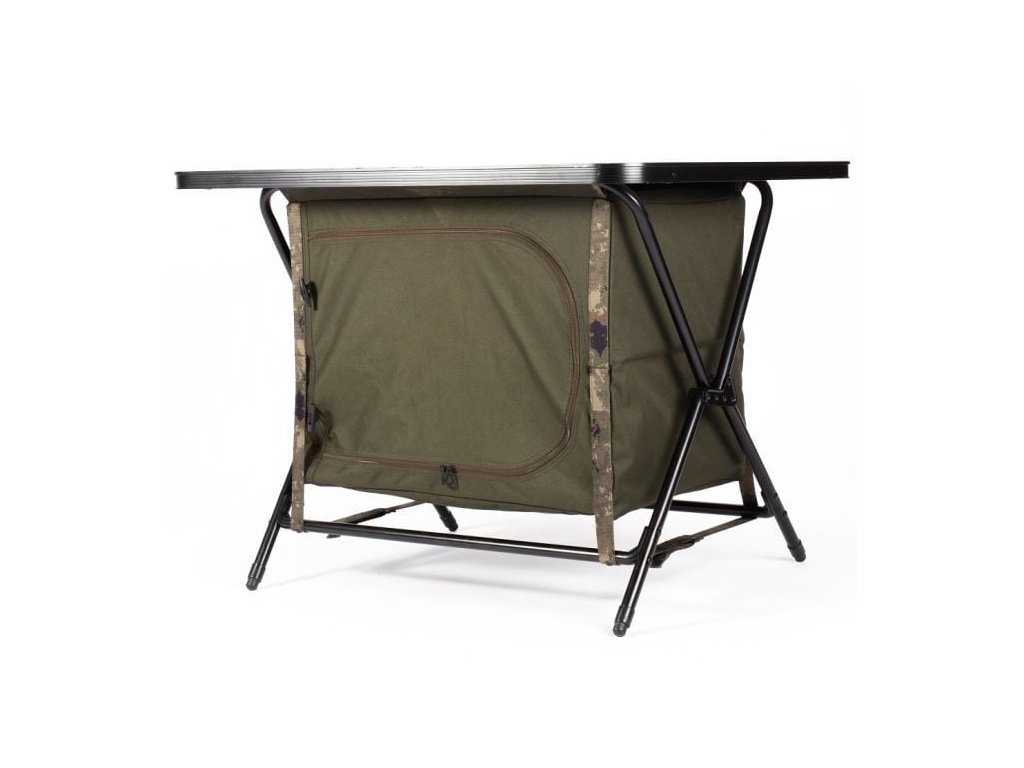 Obsahuje dve odnímateľné vnútorné police s obojstranným prístupom na zips a elastickým pripínacím chrbtom. Otočné nastaviteľné nožičky zaisťujú, že Bank Life Station bude vo vodorovnej polohe na akomkoľvek teréne. Dodáva sa v kufríku so zipsom pre ľahké zbalenie a rozbalenie.