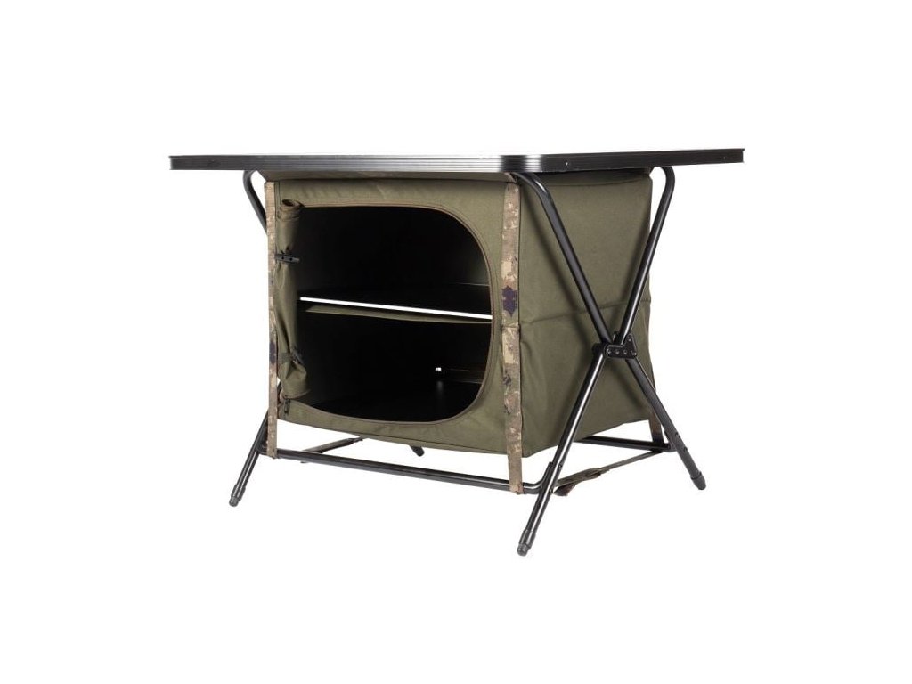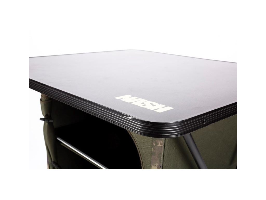 Nash Bank Life Dining Station - je vytvorený z extra silného Xkového skladacieho rámu pre ukladanie predmetov so zväčšenými rozmermi stola, ktorý umožňuje štyrom ľuďom pohodlne sedieť okolo stola a jesť.