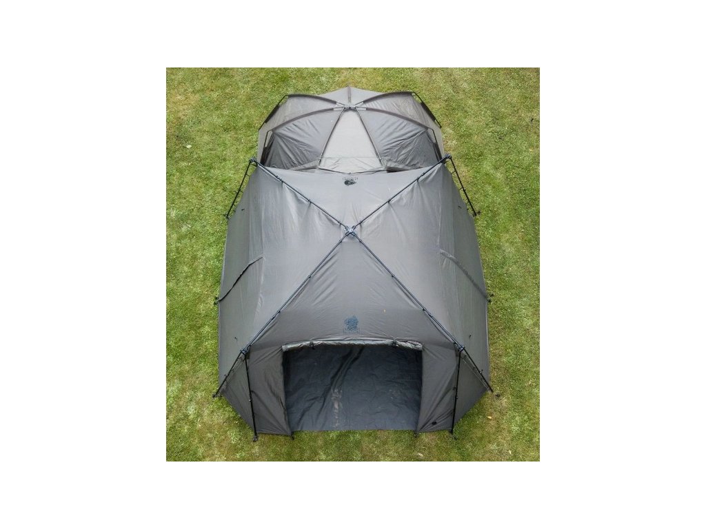 Gazebo poskytuje dvere na všetkých štyroch stranách. Jedny s dvojitým zipsom a pútkami, ktoré ich istia a ďalšie majú iba jednoduchý systém s jedným zipsom a možnosťou zrolovať a pripnúť steny k strane. Dve strany majú i moskytiérové okno, vďaka ktorému môže spoľahlivo prúdiť vzduch. Vďaka skvelému dizajnu môžete po obvode postaviť prístrešky Doubletop alebo Titan a vytvoriť tak medzi nimi spoločný priestor pre rybársky život.