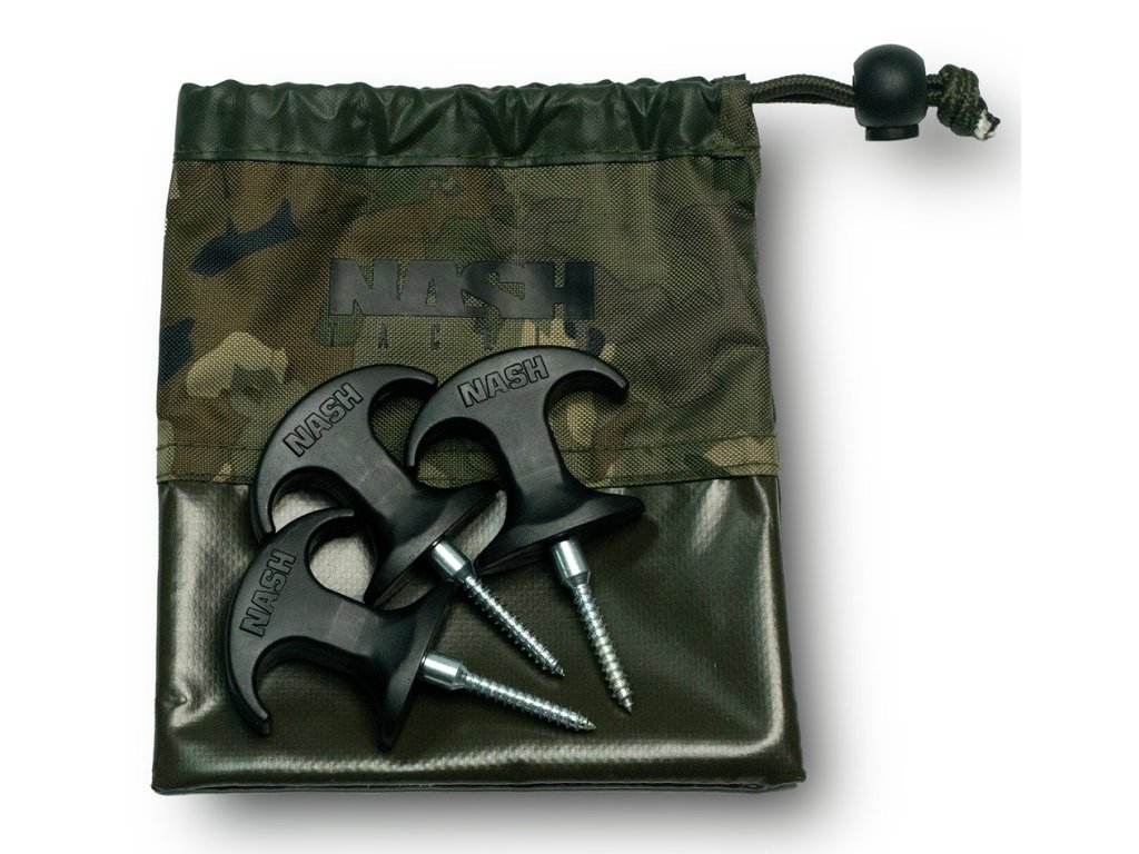 Je možné ich zaskrutkovať do drevených platforiem. Sú dodávané v transportnom vrecúšku v dizajne Nash Camo.