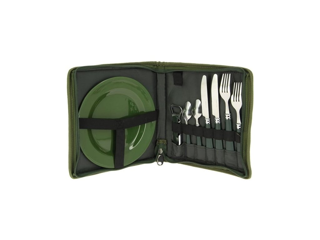 NGT Jedálenská sada DAY CUTLERY PLUS SET CAMO - Produkt z "Realtree Camo" rady od anglickej značky NGT. Jednoduchá jedálenská sada pre kempovanie. Vhodná nielen pre rybárčenie. Len 4 cm hrubá, takže nezaberie veľa miesta. Obsah jedálenské sady je chránený dobre čalúneným obalom z pevnej tkaniny.