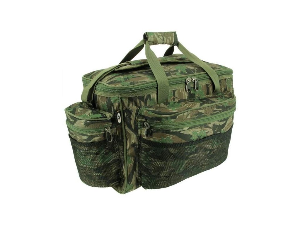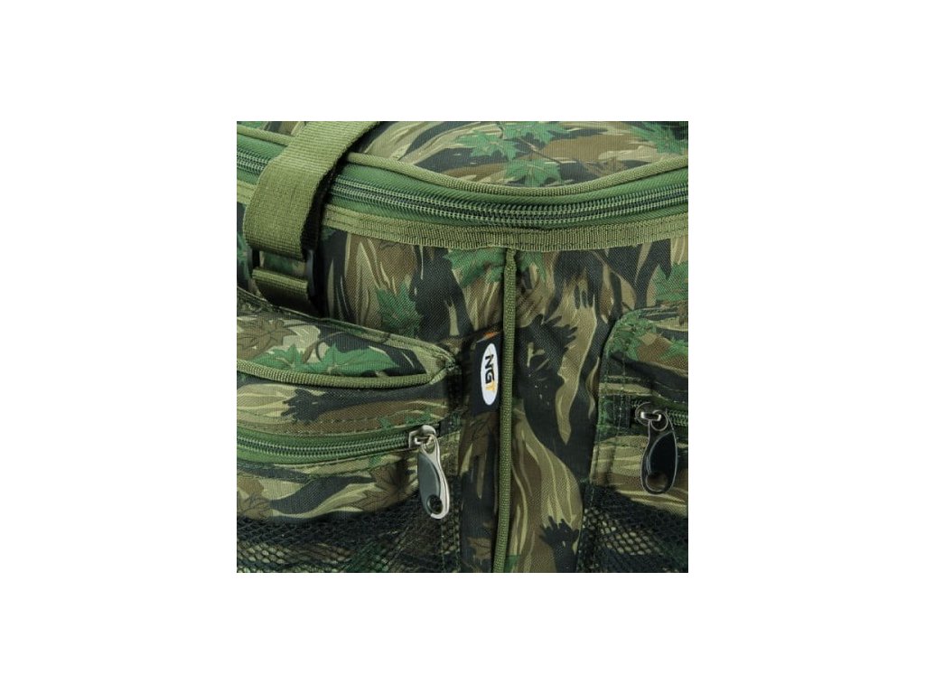 NGT Taska Camo Carryal - Kvalitná veľká taška pre rybárov v camo farbe. Obsahom je veľkýhlavný priestor a 3 ďalšie menšie priestory so zipsom. Po okrajoch sa nachádzajú čelné vrecká s okami. Má polstrovanú rukoväť apolstrovaný nastaviteľný ramenný popruh. Materiál je nepremokavý600D polyester s podporou PVC.