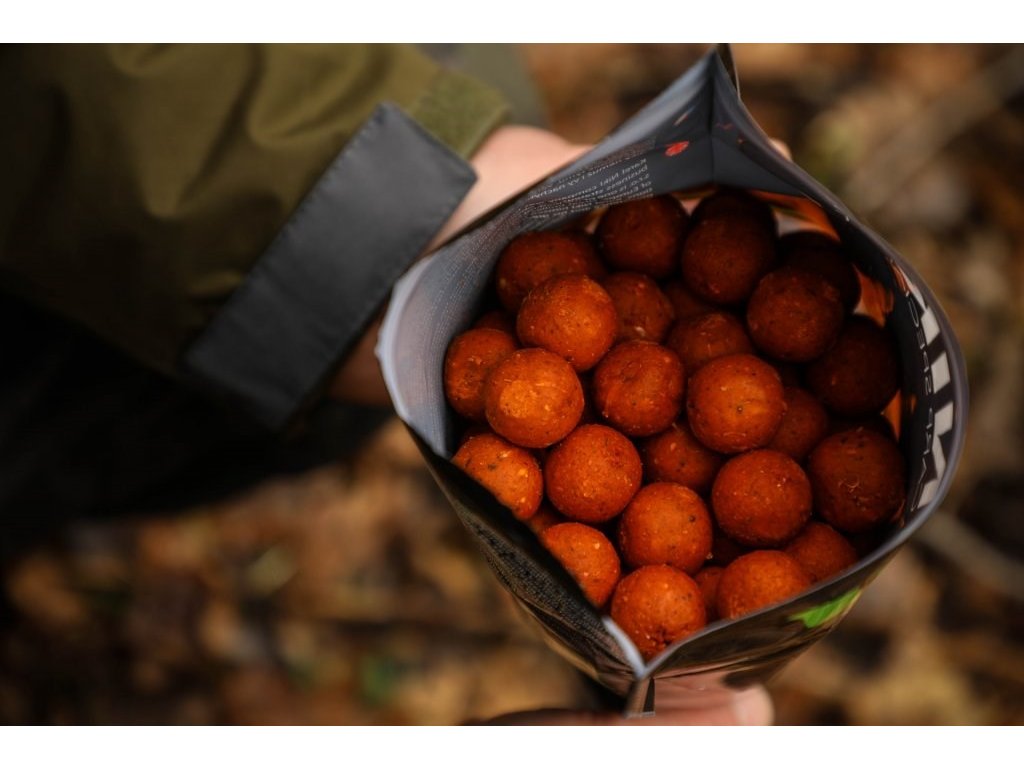 Boilies je založené na báze uhľohydrátov a obsahuje väčšiu dávku pojív, aby vydržalo dlhšie pod háčikom a odolalo ataku od bielej ryby a malých kapríkov. Na boilies môžete mať síce menej záberov, ale dočkáte sa väčších úlovkov a jednou z výhod je aj fakt, že je menej vyhľadávané sumcami a sumčekmi. Chilli & Peach môžete používať na okamžité chytanie, ale je vhodné aj na predkrmovanie a dlhšie kŕmne kampane, pretože vďaka svojmu zloženiu vydrží na dne dlhšie „čakať“ na kapry a pokiaľ guličky pred vhodením do vody ešte predmočíte vo vode s boosterm, alebo Lumixom, môžete kŕmiť aj na veľa blatistom dne. Ak chcete mať istotu, že vaša nástraha vydrží pod háčikom do príchodu aj tých najväčších kaprov, Chilli & Peach je pre vás jasnou voľbou.