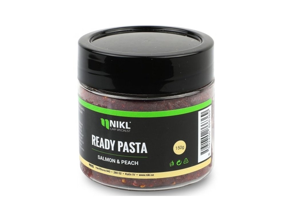 Nikl Ready Pasta Salmon & Peach 150g : Finálne zatraktívnenie nástrahy je často kľúčom k maximálnemu úspechu. Obaľovacie cesto s vysokou atraktivitou vďaka perfektnej rozpustnosti a uvoľňovaniu atraktorov urobí Vašu nástrahu na niekoľko hodín pre kaprov neprehliadnuteľnú.