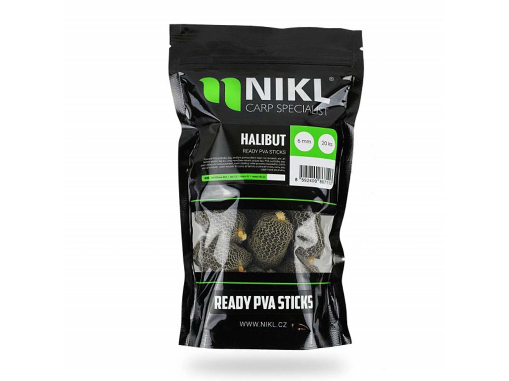 Nikl Ready PVA Stick Halibut 20ks - Hotové PVA pančuchy naplnené 6mm halibut peletami, vyrobené z našej PVA pančuchy Carp'R'Us 25mm, Ideálny variant pre tých rybárov, ktorí si nechcú sami PVA vyrábať, alebo na to nemajú čas.VLASTNOSTI: