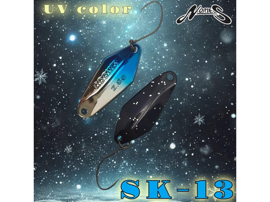 Nories Plandavka Rooney Limited Color Cold Night UV SK013 2,8g - Ak chcete vyhrať pstruhový turnaj v kvalitnej konkurencii v Japonsku, alebo Európe nepotrebujete len uloviť pstruha, potrebujete ho uloviť rýchlo a musíte ich uloviť viac ako Vaši súperi. Presne s týmto zámerom bola navrhnutá plandavka Rooney. Plandavka Nories ROONEY 2.8g SK13 je obľúbená plandavka prvých hodov, ktorú je treba nasadiť vtedy keď je pstruh aktívny a loví. Vtedy stačí rovnomerné pomerne rýchle ťahanie. Táto plandavka je však veľmi obľúbená aj vtedy ak je ryba neaktívna vtedy je potrebné spomaliť navíjanie a pridať do neho trochu nepravidelnosti. Nories Rooney je jedna z najkvalitnejších pstruhových plandaviek obľubená aj na japonských vrcholových turnajoch.