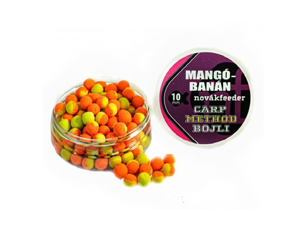 Novák Feeder Carp Method Boilies Mango Banán 10mm 30g - Tieto Carp Method boilies sú skutočnou špecialitou na lov method feeder technikou. Rovnako ako pelety Vario, aj tieto nástrahy sú určené pre maximálnu variabilitu.Na tieto nástrahy si však zvyknú nielen rybári, ale aj ryby, takže niekedy potrebujete trochu rozmanitosti. Toto boilies ponúka vynikajúcu voľbu do každej príležitosti. Niektoré príchute v baleniach nájdete nástrahy v 2 rôznych farebných odtieňoch, ktoré sú intenzívne aromatizované v daných príchutiach. Z nástrahy sa arómy vo vode postupne uvoľňujú.