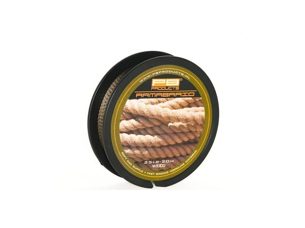 PB Products Armabraid Weed 25lb 20m - Spletaná nadväzcová šnúra bez pťahu, so širokým využitím pri rôznych druhoch kaprových montážach.