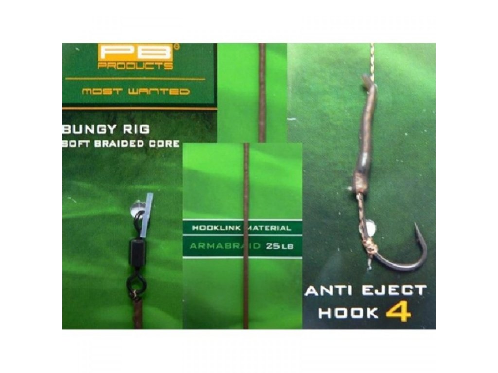 PB Products Bungy Rig v. 8 hotová montáž - PB products Bungy Rig je hotový nadväzec, ktorý pozostáva z obratlíka č. 8, elastickej gumy s 25 lbs Armabraid spletanou šnúrou, Anti-eject háčika s vlasovým rovnátkom.