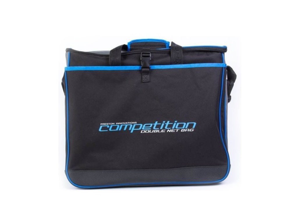 Preston Competition Double Net Bag - má vystužené švy, ktoré robia túto tašku plne nepremokavú. Vnútorné vrecko je robené pre dva vezírky spolu s niekoľkými podberákovými hlavami. Praktické je aj ďalšie predné vrecko, napríklad pre príslušenstvo k debne či kreslu.VLASTNOSTI: