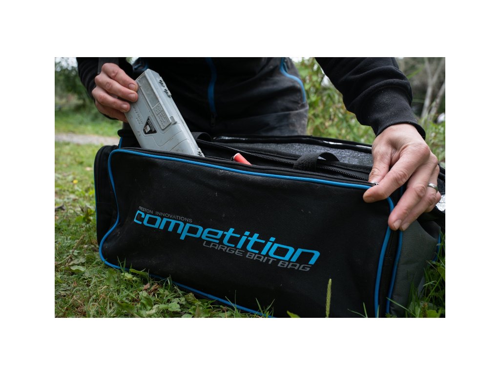Preston Competition Large Bait Bag - je ideálny pre rybárov, ktorí si radi vezmú dobrý výber návnad na breh, tepelná podšívka pomôže udržať návnadu v top stave po celý deň, zatiaľ čo množstvo menších predmetov, návnadových dipov, band´umov atď. možno uložiť do priestranného predného a bočného vrecka.VLASTNOSTI: