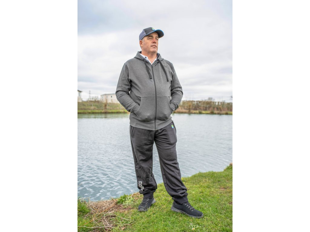 Preston Grey Hoodie vel. XXL pohodlná mikina so zipsom v šedej farbe s pogumovanou potlačou vpredu a veľkou pogumovanou potlačou vzadu. Vysoko kvalitný YKK zips.Vyrobené z 80% bavlny, 20% polyesteru
