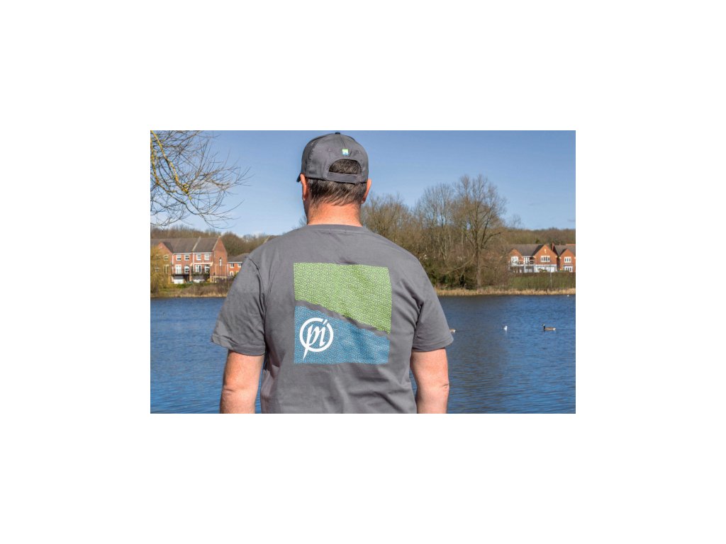 Preston Grey T-Shirt vel. M - Tričko šedej farby z prednej strany malým logom Preston Innovations a veľkou farebnou potlačou zo zadnej strany.Vyrobené zo 100% bavlny
