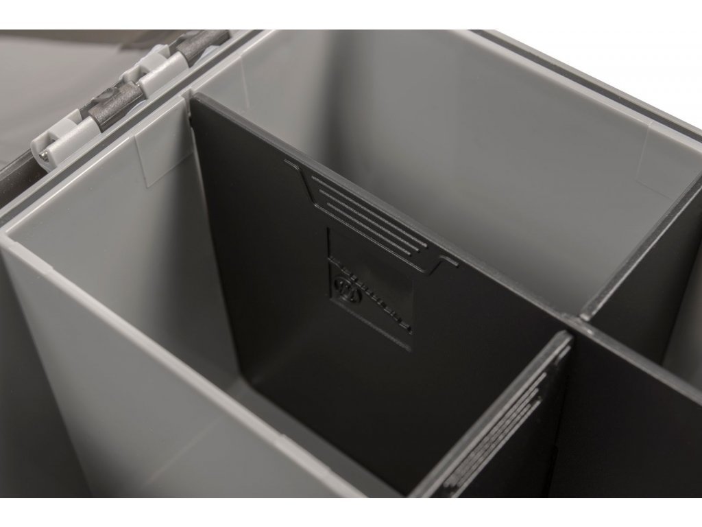 Vyberateľné prepážky vytvárajú množstvo možných konfigurácií od dvoch veľkých sekcií až po osem malých sekcií, ktoré sú ideálne na prepravu rôznych typov kŕmidiel.