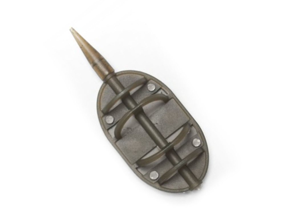 Vďaka plochému olovu umiestnenému zo spodnej strany košíka máte istotu že košík dopadne vždy touto stranou na dno. Rozšírené rebrovanie uprostred košíka zaisťuje možnosť použiť aj väčšie nástrahy.