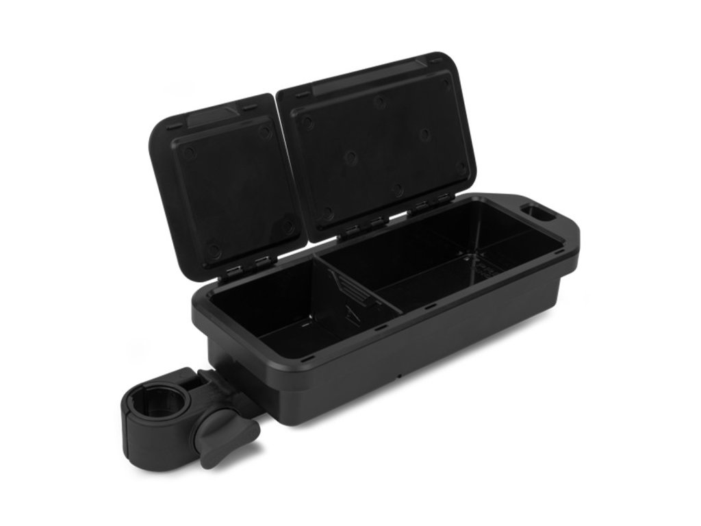 Preston Offbox Deluxe Accessory Tray je malý, kompaktný podnos s vodotesným vekom, navrhnutý na uloženie menších doplnkov, nápojov a dokonca aj mobilného telefónu. Bol účelovo vyvinutý tak, aby sa zmestil medzi dve nohy sedačky (seatboxu) a medzi bočný stolík Venta-Lite.