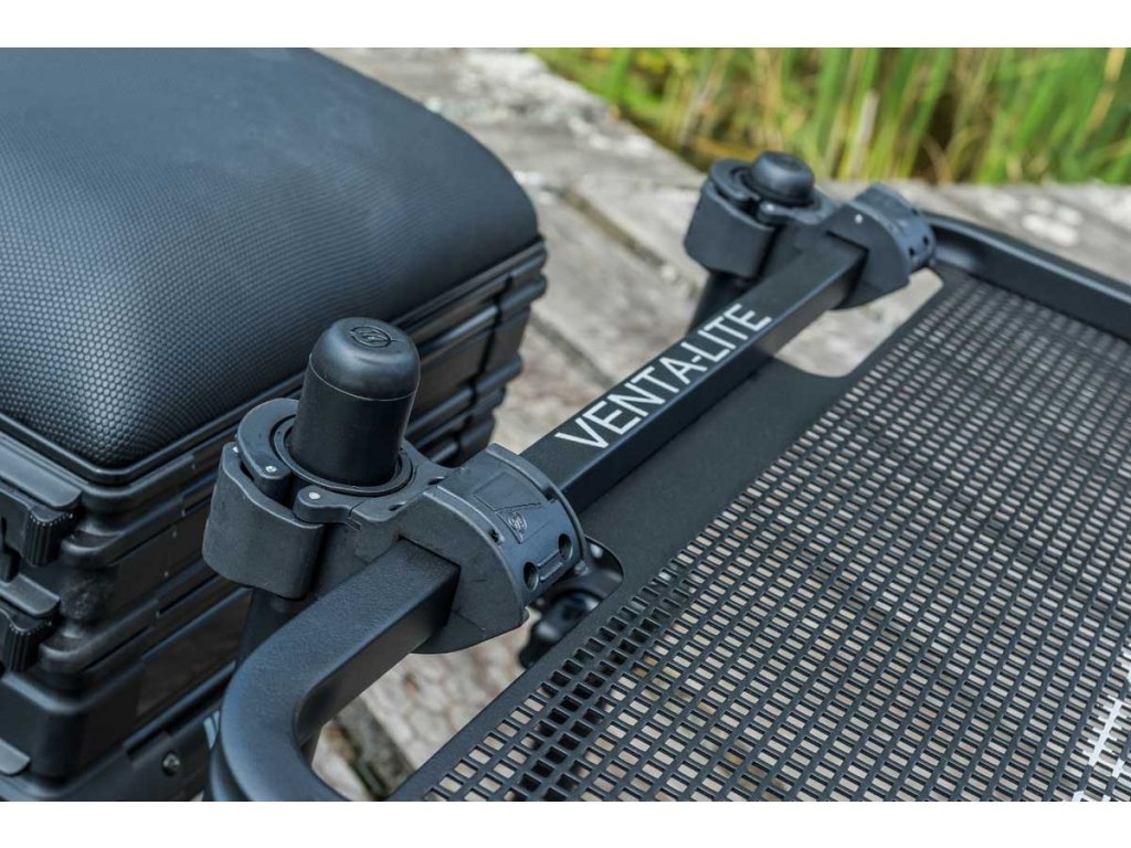 Na tomto novom dierovanom plate Preston Offbox36 Venta Lite Side Tray Large môžeme nájsť najmä nový upevňovací systém k nohám debny. Upevnenie na nohy je jednoduchšie, než kedykoľvek predtým a pritom zostáva veľmi pevná.Nový upevňovací systém je plne kompatibilný aj s PRESTON INSRERTS, vďaka ktorým plato dostanete aj na debny ostatných firiem. Stačí si vybrať iba vložku so správnym priemerom. Táto veľkosť plata pojme až 6 ks PRESTON BAIT TUBS s objemom 1,8 l a preto je veľmi univerzálna a dostačujúca pre väčšinu situácií.