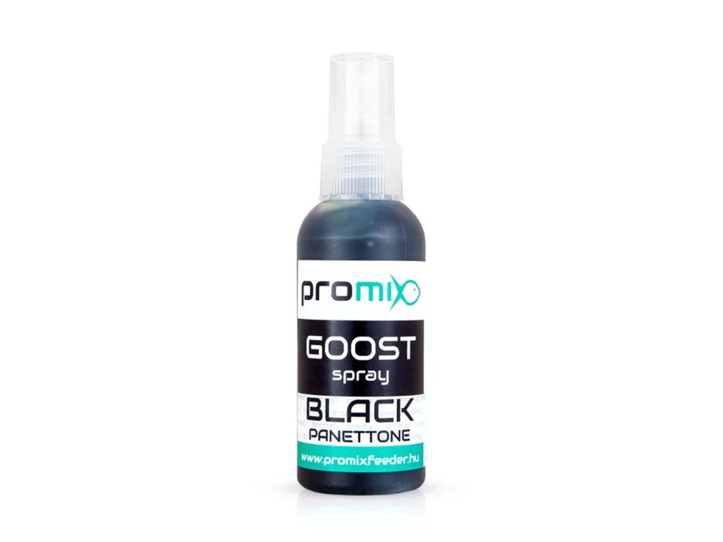 Promix Goost Spray Black 60g - Po úspechu sprejov Turbo sa hlásime s novým, ktorý dostal pomenovanie GOOST. Tento sprej je oproti tradičným arómam a farebným sprejom obrovský krok vpred. Počas jeho výroby sme použili neodolateľné arómy a výnimočne koncentrované farby. Tie sme použili na sprejový základ, ktorý sa rozpúšťa výbušne, vďaka čomu sa nikdy neminie účinku.Nasprejovaním na naplnený košík začne po prieniku do vody okázalo pracovať už na hladine. Až po dosiahnutie dna za sebou košík zanecháva intenzívny pás farby a arómy v celom vodnom stĺpci. To je dokonalý kompas pre ryby ku košíku a v ňom ponúkaným nástrahám. Pokračuje v rozpúšťaní aj na dne a vytvára okolo košíka výrazný oblak arómy a farby, ktorým dráždi ryby ku kŕmeniu.
