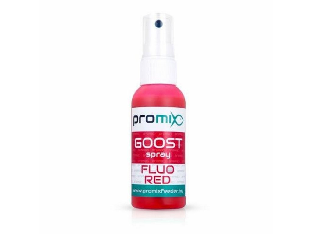 Promix Goost Spray Fluo Red 60g - Po úspechu sprejov Turbo sa hlásime s novým, ktorý dostal pomenovanie GOOST. Tento sprej je oproti tradičným arómam a farebným sprejom obrovský krok vpred. Počas jeho výroby sme použili neodolateľné arómy a výnimočne koncentrované farby. Tie sme použili na sprejový základ, ktorý sa rozpúšťa výbušne, vďaka čomu sa nikdy neminie účinku.Nasprejovaním na naplnený košík začne po prieniku do vody okázalo pracovať už na hladine. Až po dosiahnutie dna za sebou košík zanecháva intenzívny pás farby a arómy v celom vodnom stĺpci. To je dokonalý kompas pre ryby ku košíku a v ňom ponúkaným nástrahám. Pokračuje v rozpúšťaní aj na dne a vytvára okolo košíka výrazný oblak arómy a farby, ktorým dráždi ryby ku kŕmeniu.