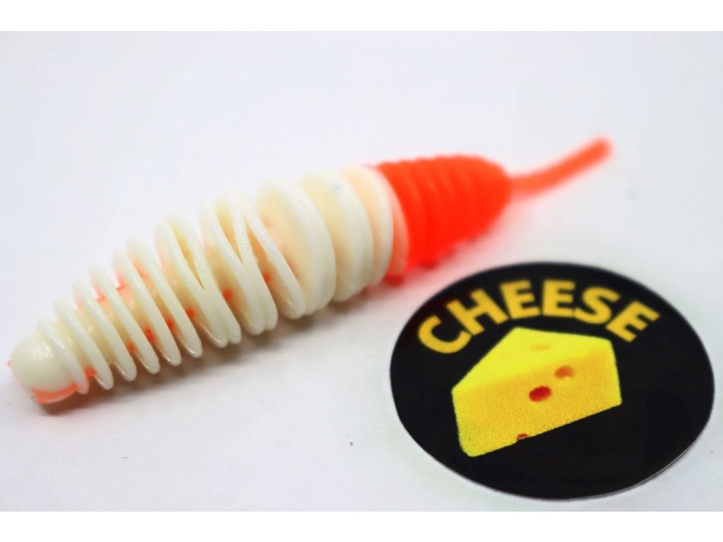 Ratterbaits Trout Plamp 2,2 Syr White Orange - Je mäkká, ale odolná silikónová nástraha, ktorá vyniká svojou extra vylepšenou syrovou arómou. V skratke povedané telo tejto nástrahy sa veľmi precízne vlní a jemne vibruje. Spojenie týchto aspektov zaručuje veľa záberov a úspechov pri love.Charakteristika: