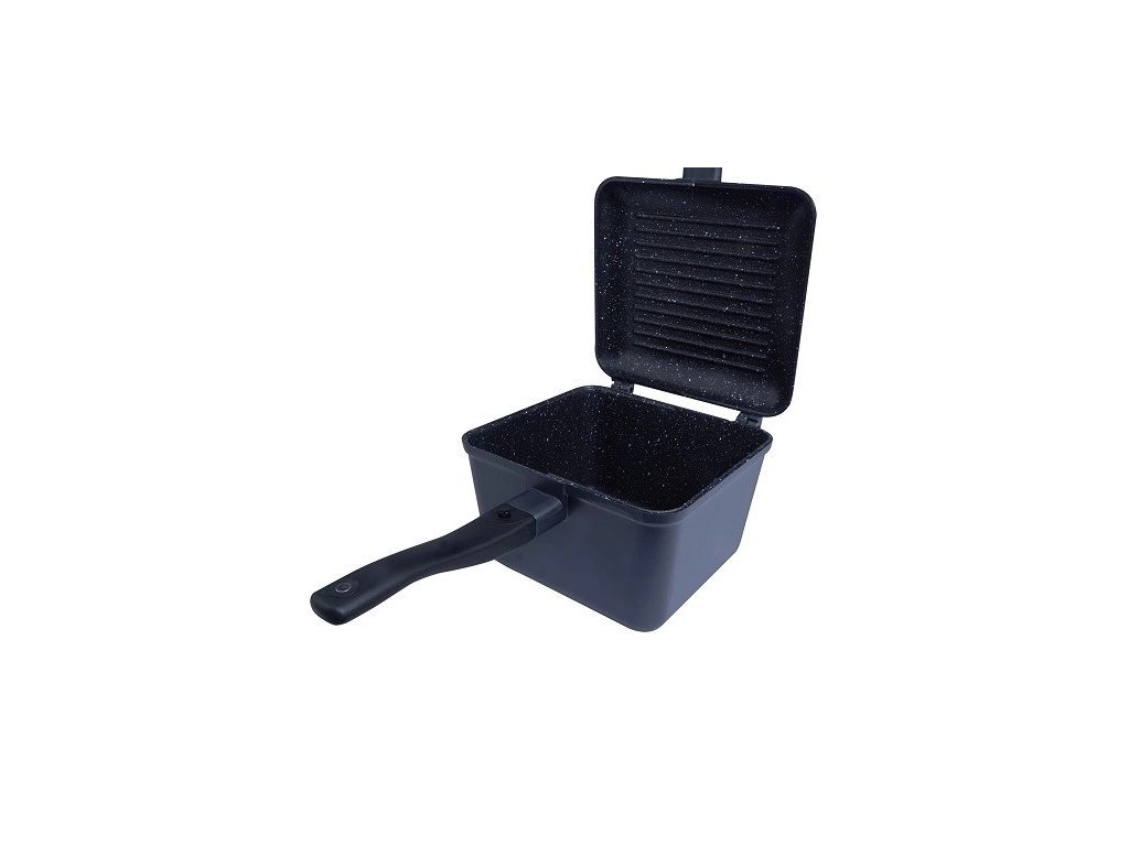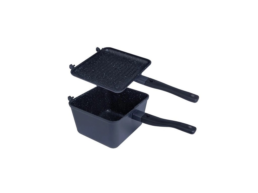 RidgeMonkey Connect Deep Pan & Griddle XL Granite Edition : S nepriľnavým povrchom GRANITE v štýle žuly robí z tejto outdoorovej panvice úplne profesionálny riad. Panvica Connect Deep je super kompaktná, odľahčená s unikátnym odnímateľným systémom, ktorý premení jednu panvicu na dve – hlboký hrniec a samostatnú panvicu, kedy veko hlbšej panvice je možné použiť ako samostatnú panvičku a môžete variť dve jedlá naraz. Panvica na grilovanie je tiež zameniteľná s sendvičovačom RidgeMonkey Connect Sandwich Toaster Granite Edition.