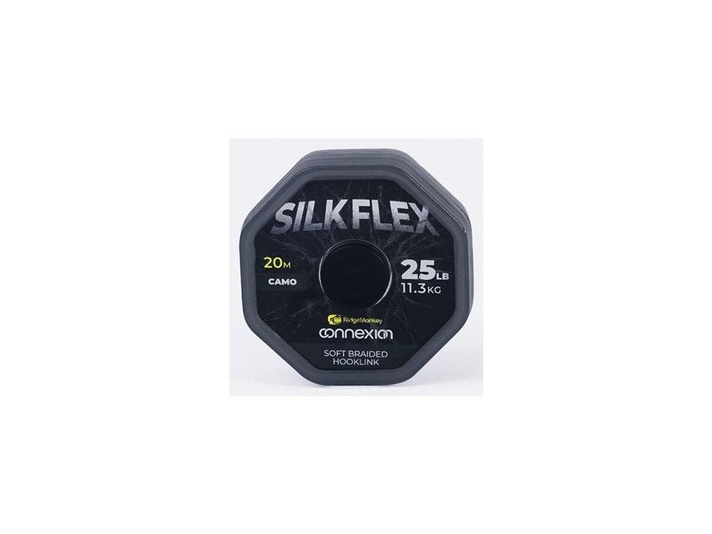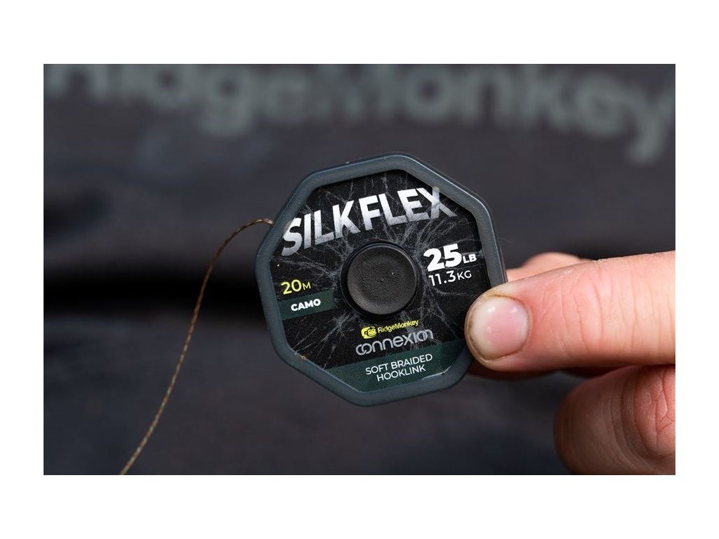 RidgeMonkey Connexion SilkFlex Soft Braid 25lb 20m : SilkFlex Soft Braid je ultra jemná pletená šnúrka, ktorá je zároveň veľmi ohybná. Je ideálny na chytanie s PVA vrecúškami, ale je tiež skvelým náväzcovým materiálom na vodách pod veľkým rybárskym tlakom, kde sú ryby už veľmi opatrné. Bezkonkurenčnou voľbou je aj pre mäkkú časť populárnej montáže Combi Rig, ponúka totiž maximálnu flexibilitu. Šnúrka má vynikajúcu odolnosť proti oderu a veľmi nízku viditeľnosť.