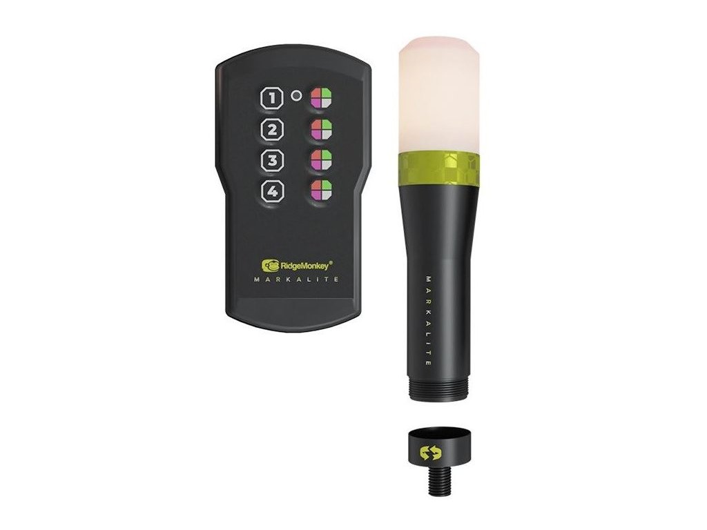 RidgeMonkey MarkaLite Kit : Sme hrdí na inovatívne osvetlenie tyčovej bójky, ktoré dobijete pomocou USB a nepotrebujete tak ďalšie batérie. Obsahuje zabudovanú lítiovú batériu, 4 farby osvetlenia, senzor svitania a stmievania a dobíjacie diaľkové ovládanie s dosahom až 350 m.