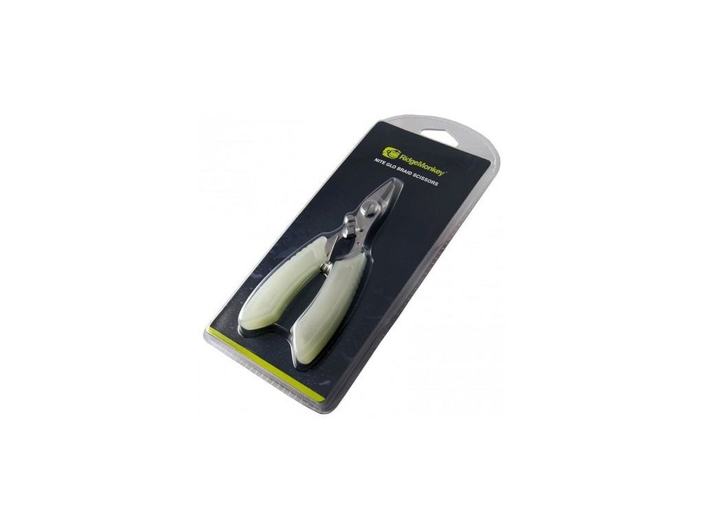 RidgeMonkey svietiace nožnice (Nite Glow Scissors) - Super ostré ozubené nože, ktoré prestrihnú aj tú najpevnejšiu šnúrku bez najmenších problémov, pružinový mechanizmus, ktorý znesie veľké zaťaženie, už len preto by mali byť naše nožnice nevyhnutnou súčasťou výbavy každého rybára.