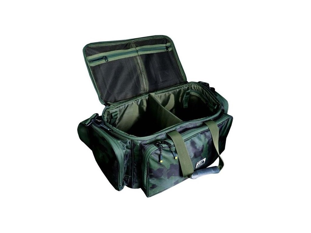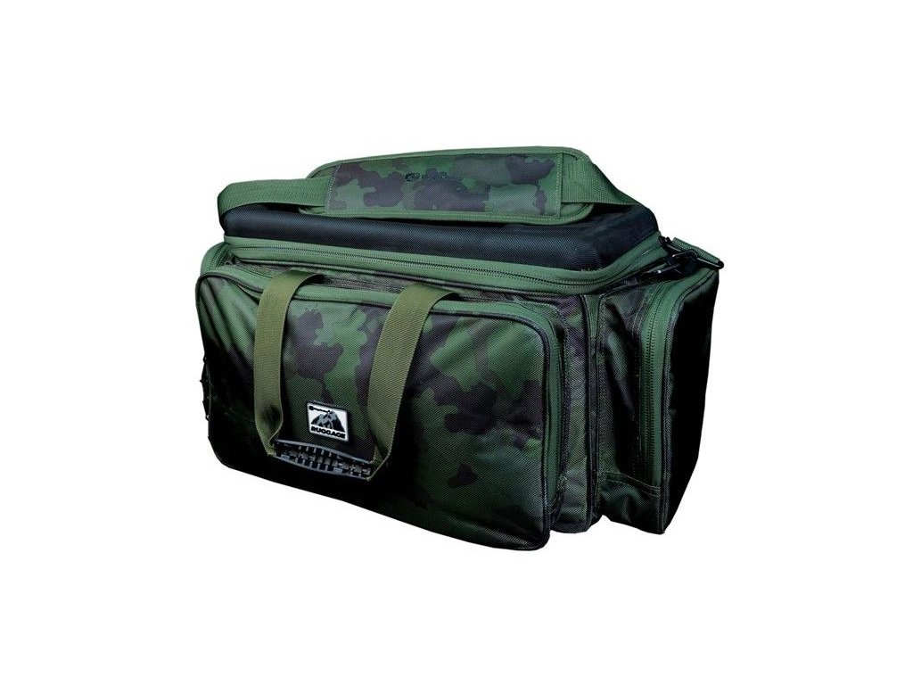RidgeMonkey Taška Ruggage Hardtop Carryall : Taška Ruggage Hardtop Carryall ponúka kapacitu 45 litrov v hlavnom vnútornom priestore, ktorý je možné v prípade potreby rozdeliť. Taška má štyri vonkajšie vrecká s dvojcestným zipsom a vnútorné sieťované vrecká na zips pre prehľadnejšie usporiadanie menších predmetov. Taška je dodávaná s pohodlným ramenným popruhom. Má ergonomicky navrhnuté rukoväte, ktoré je možné na príjemnejšie prenášanie spojiť k sebe.