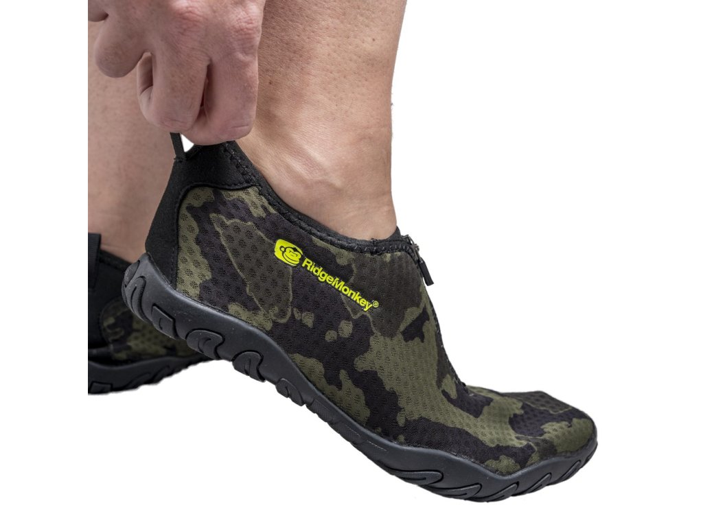 RidgeMonkey Topánky APEarel Dropback Aqua Camo Shoes v.44-45 - Robustná protišmyková obuv Aqua Shoe vyrobená z priedušného elastického materiálu, ktorý zanechá vaše nohy svieže po celú dobu používaný