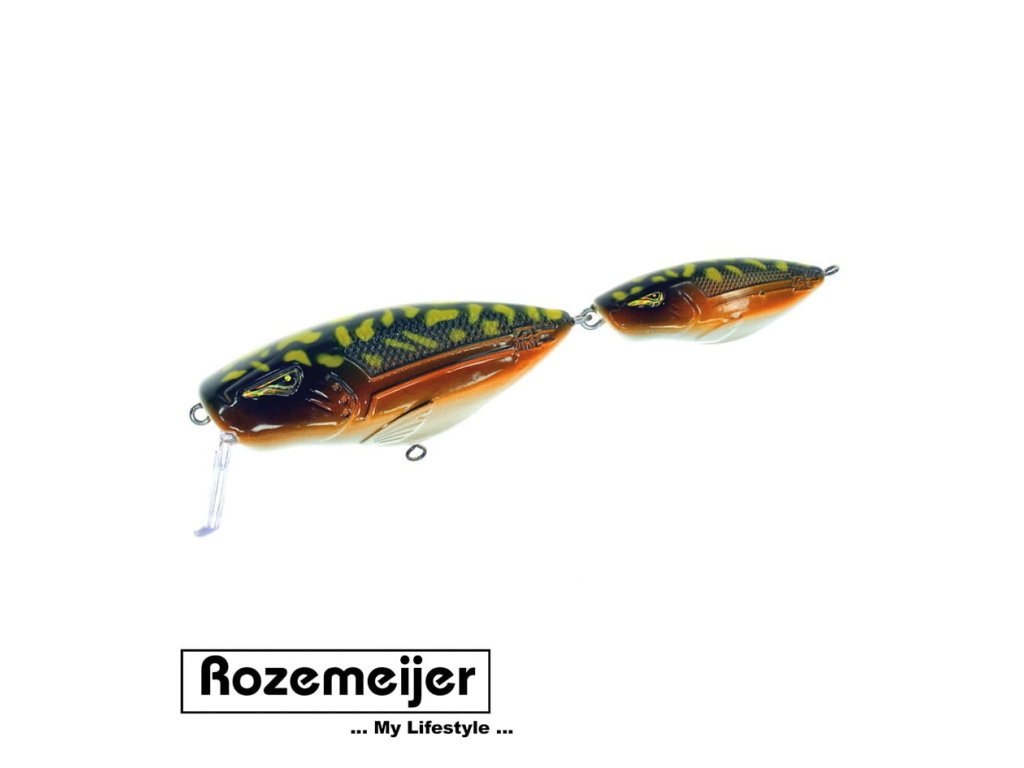 Rozemeijer Wobler Stalker 13cm 36g f.65225 - Jedinečný wobler s názvom Stalker už v testovacej fáze chytil veľa trofejných šťúk. Je to výrazným kúskom woblera, ktorý svojim zdvojeným tvarom rybky spôsobuje agresívne pohyby čo určite nezanecháva bez povšimnutia veľkých dravcov a vyprovokuje ich k útoku.