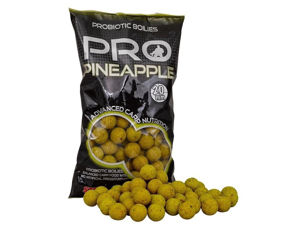 Starbaits Boilies Pro Pineaple 2,5kg 20mm - Pro Pineapple (ananas) je ďalším členom úspešných nástrah z radu Probiotic. Je to nutrične bohatá nástraha ľahko rozpoznateľná kaprom ako zdroj potravy.Rovnako ako ostatné boilies a komponenty je aj Pro Pineapple plné prírodných ingrediencií a derivátov ako sú kvasnice, betaín, extrakt z pečene, minerály, oleje, ktoré sú pre kapry prirodzené a potrebné pre ich výživu.