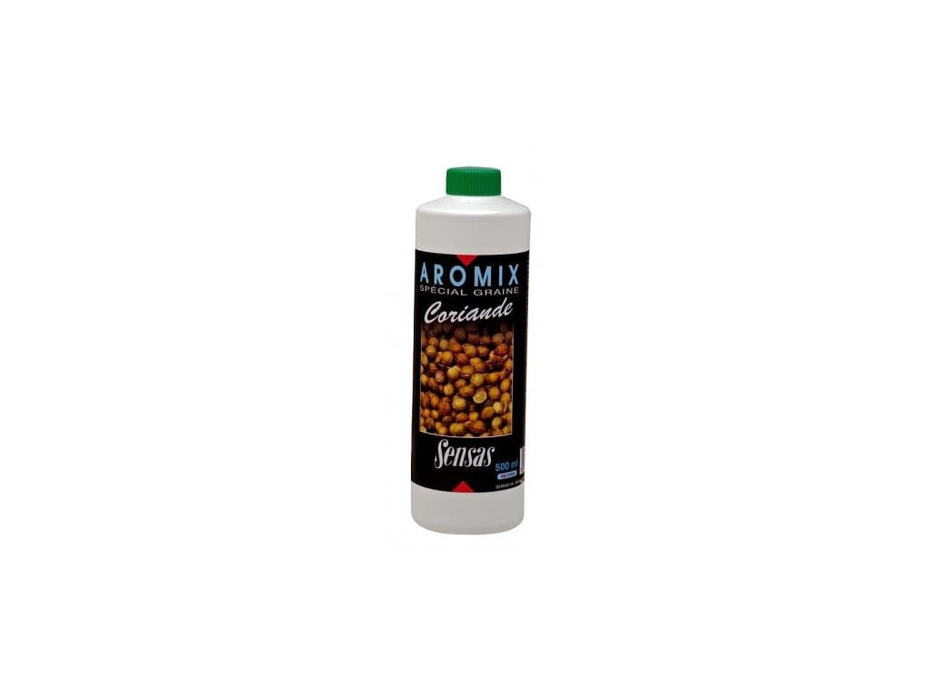 Sensas Aromix - Koriander 500ml - Aromix je tekutý posilňovač do krmív a partiklu, ktorý predstavuje veľmi účinné sladidlo, na ktoré ryby veľmi dobre reagujú.