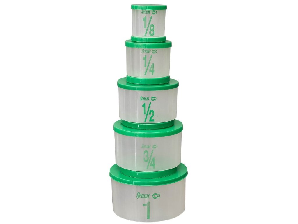 Sensas Sada merných misiek COMPETITION s dierkami - Sada odmerných misiek s vekom o veľkostiach 1 l, ¾ l, ½ l, ¼ l a 1/8 l.