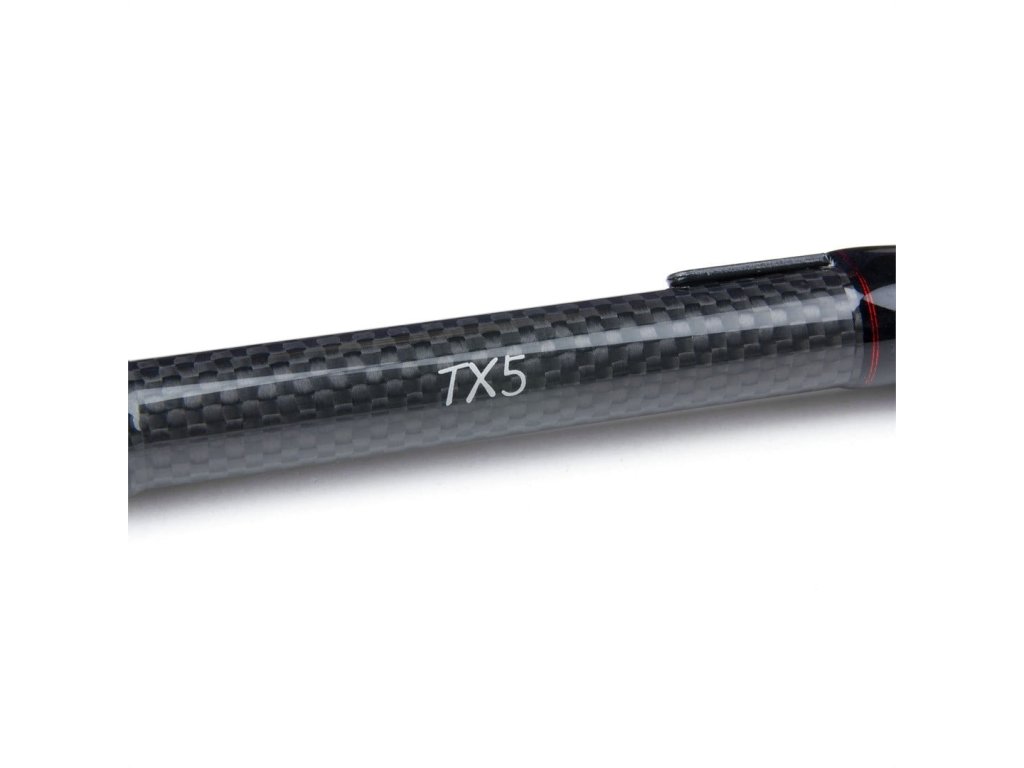 má velmi odolný blank z kompozitu HPC200 s příměsí Biofibre. Očka kaprového prutu Tribal TX5 jsou vyrobeny ze SiC materiálu karbidu křemíku, jsou otěruvzdorná a s velkým 50mm náběhovým spodním očkem. Sedlo navijáku Fuji DPS spolehlivě udrží i velké Big Pit navijáky Shimano. Štíhlý spodní úchop s navinutou páskou dokonale sedne do ruky a při nahazování neklouže. Bezpečnostní zátka prutu na rukojeti a ochranný klip na vlasec jsou parádními doplňky prutu Shimano Tribal TX5.
