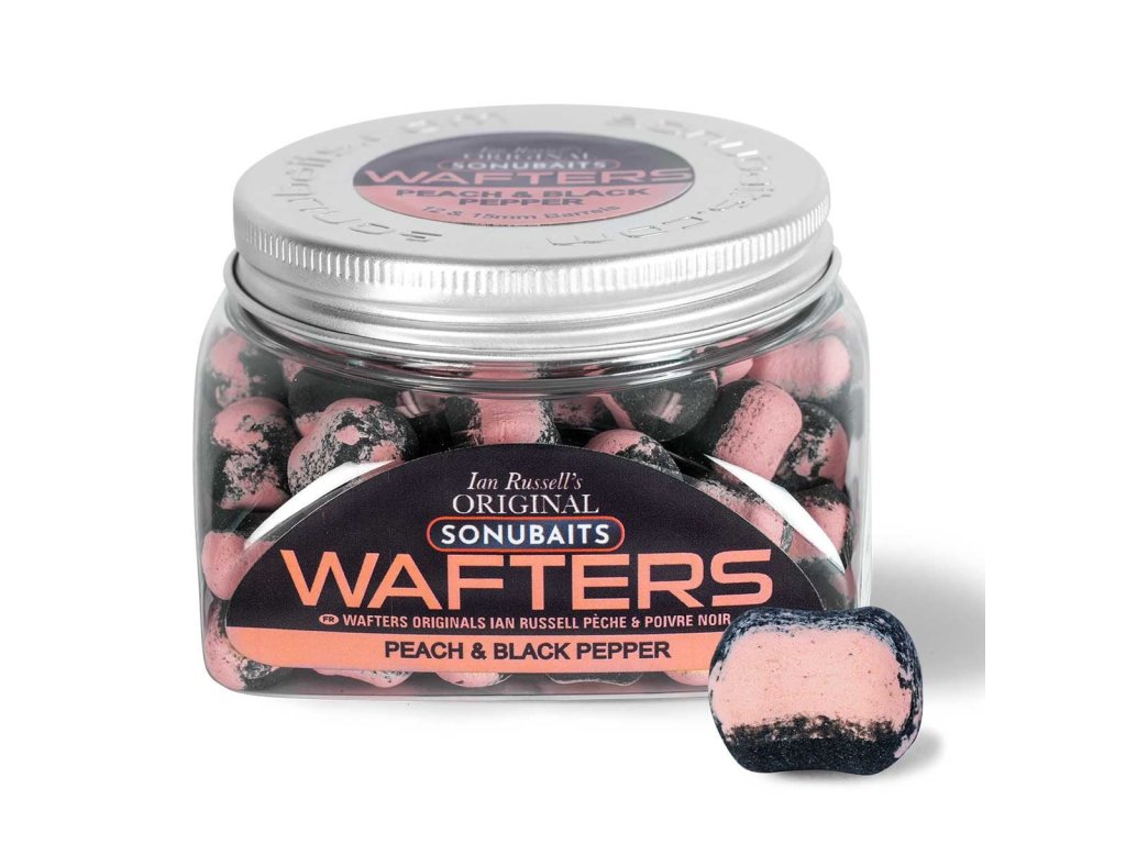 Sonubaits Original Wafters Peach & Black Pepper - Táto nástraha vykazovala výborné výsledky už pri testovaní. Sú zložené z dvoch fluoro farieb, čím ešte zvyšujú svoju atraktivitu. V každom druhu je použitá vysoko účinná kombinácia prichutí.