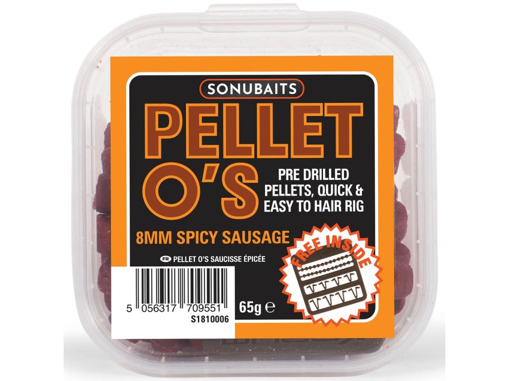 Sonubaits Pellet O´S Spicy Sausage - Ponorné pelety s otvorom na jednoduché a rýchle nastavenie. Vhodné na nastraženie "pod háčik" alebo do gumičky. Súčasťou balenia sú zarážky zdarma. K dispozícii v niekoľkých rôznych príchutiach.