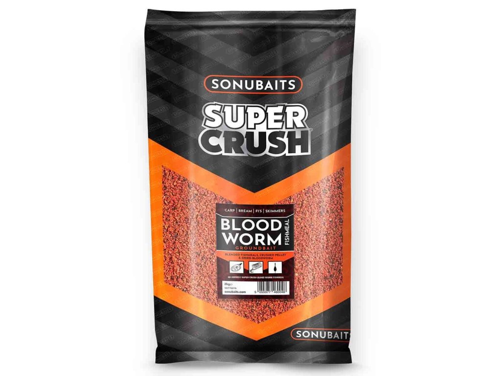 Sonubaits Super Crush Bloodworm 2kg - Mäsové vysoke atraktívne krmivo obsahujúce mleté larvy petentiek a rybacích múčok. Je charakteristická výraznou červenou farbou a silnou vôňou.