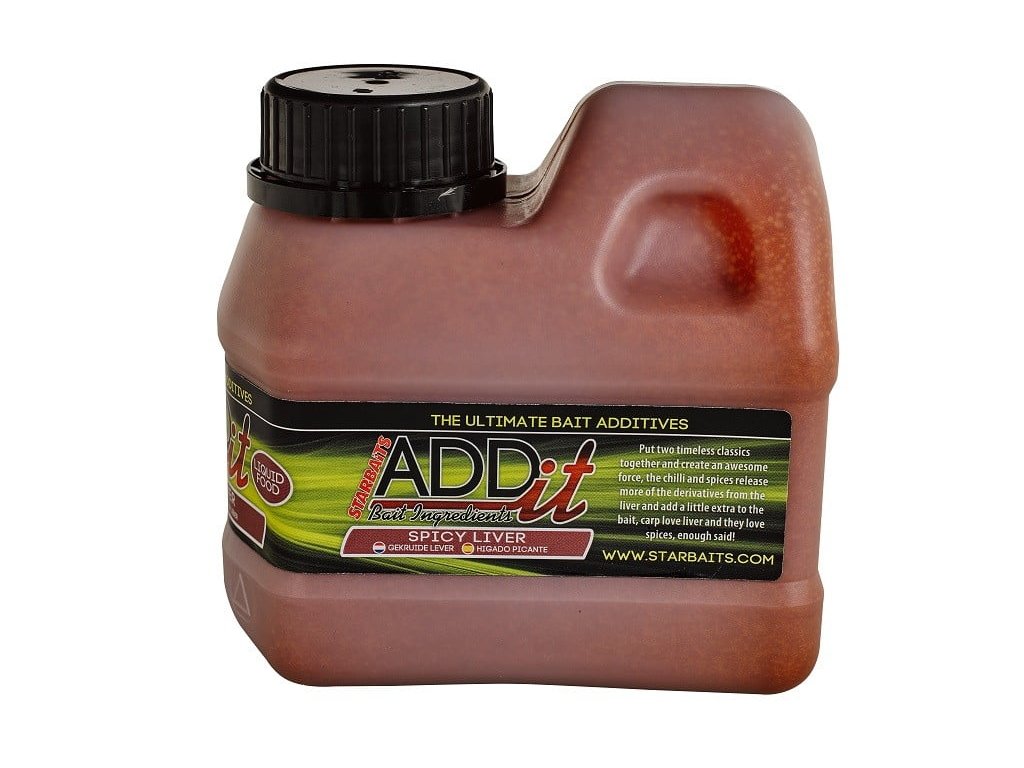 Starbaits Addit 500ml Korenistá Pečeň - Pečeňová zálievka ADDit Liquid Spicy Liver je čisto prírodný produkt najvyššej kvality a je priam magnetom pre kapitálne kapry, ktoré proste pečeň a korenie milujú!!