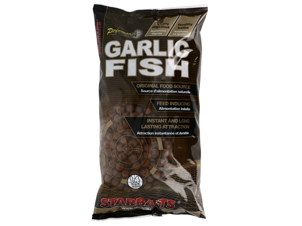 Starbaits Boilies Concept Garlic Fish 14mm 2,5kg - Jedná sa o novinku 2019 od firmy Starbaits. Základ tohoto boilies tvoria prvotriedne rybie suroviny ako sú rybie múčky, zmes rôznych rybích olejov, rozpustných rybích extraktov, minerálov a proteínov. Druhou základnou surovinou je čistý esenčný cesnakový olej, ktorý dodáva týmto boilies prirodzenú cesnakovú vôňu. Aróma sa uvolňuje ihneď po dopade boilies na dno. Vďaka špeciálnemu cesnakovému práškovému atraktoru a minerálnej soli mejú tieto boilies nezamenitelnú cesnakovo slanú chuť, ktorá vyvoláva u kaprov mimoriadnu žravosť.